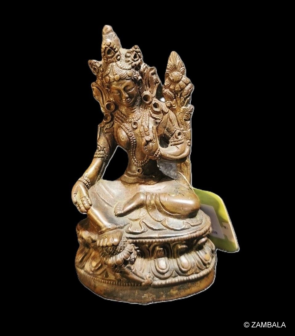 Description: Green Tara (Tibetan: Jetsun Drolma) is one of the most revered female bodhisattvas in Tibetan Buddhism (Vajrayana). She is considered the embodiment of compassion, specializing in providing swift protection and salvation. In Tibetan Buddhism, she plays the roles of "Swift Protectress" and "Mother of Liberation," symbolizing active compassionate action and wisdom. She is the female aspect of Avalokiteshvara and is often described as an action hero, able to respond instantly to the cries of sentient beings, rescuing believers from worldly dangers (such as disasters and diseases) and mental obstacles (such as fear and karmic obstacles). Green Tara is not only a bodhisattva but is also considered an enlightened being who has attained Buddhahood. She is the mother of all Buddhas and embodies the essence of Prajnaparamita (Mother of Wisdom). In the four major schools of Tibetan Buddhism (Nyingma, Sakya, Kagyu, and Gelug), Green Tara is an important meditation deity. Practitioners cultivate bodhicitta and compassion through her practice. Her green color symbolizes vitality, overcoming fear, and the unity of all colors (activities), representing her multifaceted capacity for pacifying, increasing, enthralling, and wrathful activities. She stands out among the twenty-one Taras as the most prominent form, widely integrated into daily rituals, amulets, and prayers.