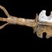 The Five-pronged Manjushri Wisdom Sword, also known as the Manjushri Wisdom Sword or the Manjushri Demon-Subduing Sword, is one of the principal instruments of Manjushri Bodhisattva in Buddhism. Its distinctive features include a double-edged blade, typically crafted from blue iron, encircled by a flame pattern, and a gold-forged hilt, adorned with a half-cut five-pronged vajra (the five prongs symbolizing the five wisdoms and the five Buddhas). Wisdom fire radiates from the tip of the sword, symbolizing keen awareness and the ability to eliminate delusion.